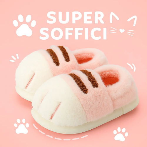 <p>Morbide, calde e irresistibili, le <strong>pantofole rosa a zampa di gatto per bambini</strong> sono ideali per accompagnare i più piccoli nei momenti di gioco e relax in casa. Realizzate in <strong>poliestere super soffice effetto peluche</strong>, avvolgono il piedino con comfort e calore, mentre la struttura con <strong>tallone coperto</strong> garantisce stabilità e una calzata sicura. La <strong>suola in PVC antiscivolo</strong> assicura aderenza anche su pavimenti lisci.</p>