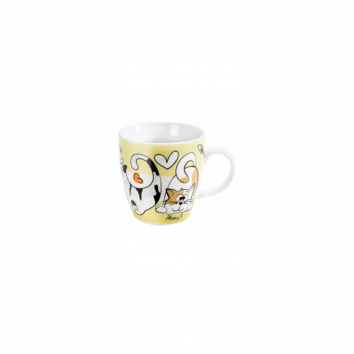 Caratteristiche della tazzina da caffè gialla con gattini: