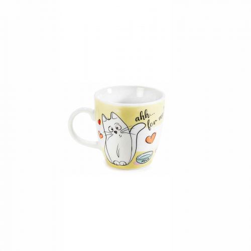 La pausa caffè diventerà un momento dolcissimo con questa tazzina da caffè in porcellana smaltata. Il fondo giallo chiaro fa risaltare i tre gattini giocherelloni e tenerissimi, disegnati in stile cartoon con cuori e altri piccoli dettagli. La forma è comoda da impugnare, con manico arrotondato e bordo liscio, adatta all’uso quotidiano: dalla colazione al caffè dopo pranzo. Venduta singolarmente, ti permette di prendere solo la tua tazzina preferita oppure di creare un piccolo set gattoso da usare con famiglia e amici.