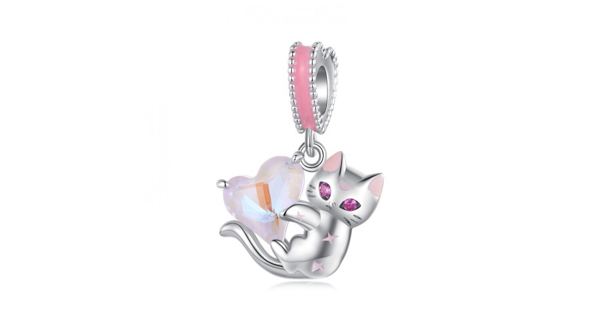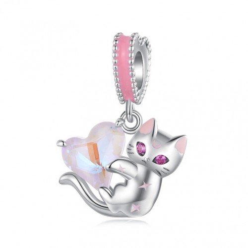 Caratteristiche del charm pendente in argento 925 gattino e zircone a forma di cuore: