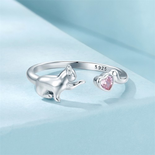 Charm pendente in argento 925 gattino e zircone a forma di cuore