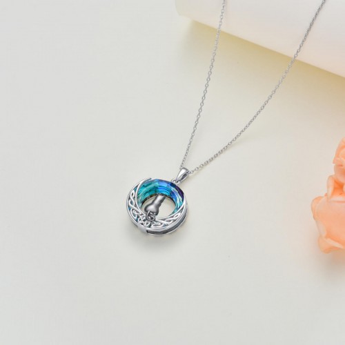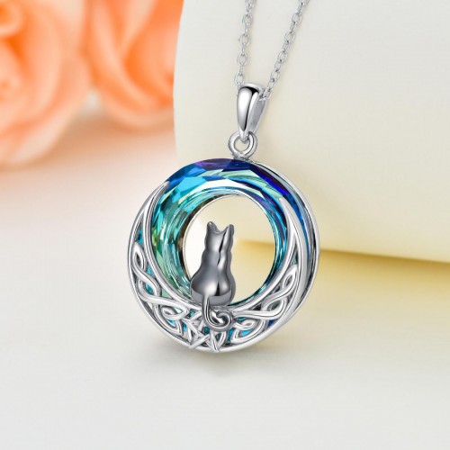 Per chi cerca un gioiello che non sia solo bello, ma anche riconoscibile, questa collana rappresenta una scelta diversa dal solito. Il pendente raffigura un gatto stilizzato racchiuso in un cerchio blu luminoso. Il contrasto tra l’argento e il blu dona eleganza e carattere, senza risultare eccessivo. È un accessorio che si fa notare per i dettagli: le linee pulite, gli elementi intrecciati nella parte inferiore e la luce del cristallo creano un equilibrio tra eleganza e carattere. Il cerchio è realizzato in cristallo lavorato (vetro ad alta brillantezza), scelto per la sua capacità di riflettere la luce in modo intenso e uniforme, e quindi valorizzare il design del pendente. La collana è in argento 925 placcato rodio, una finitura che mantiene la luminosità nel tempo e offre una maggiore resistenza all’ossidazione. È inoltre adatta anche a chi ha la pelle sensibile. Un gioiello pensato per chi ama i gatti, ma cerca qualcosa di più elegante, meno scontato e capace di distinguersi.